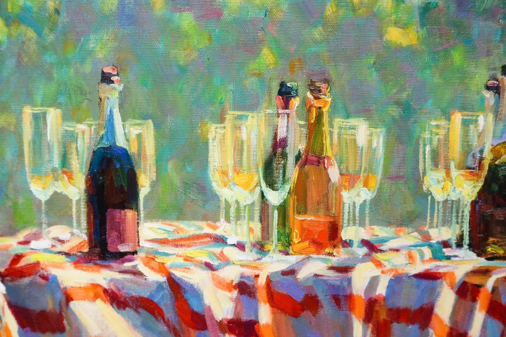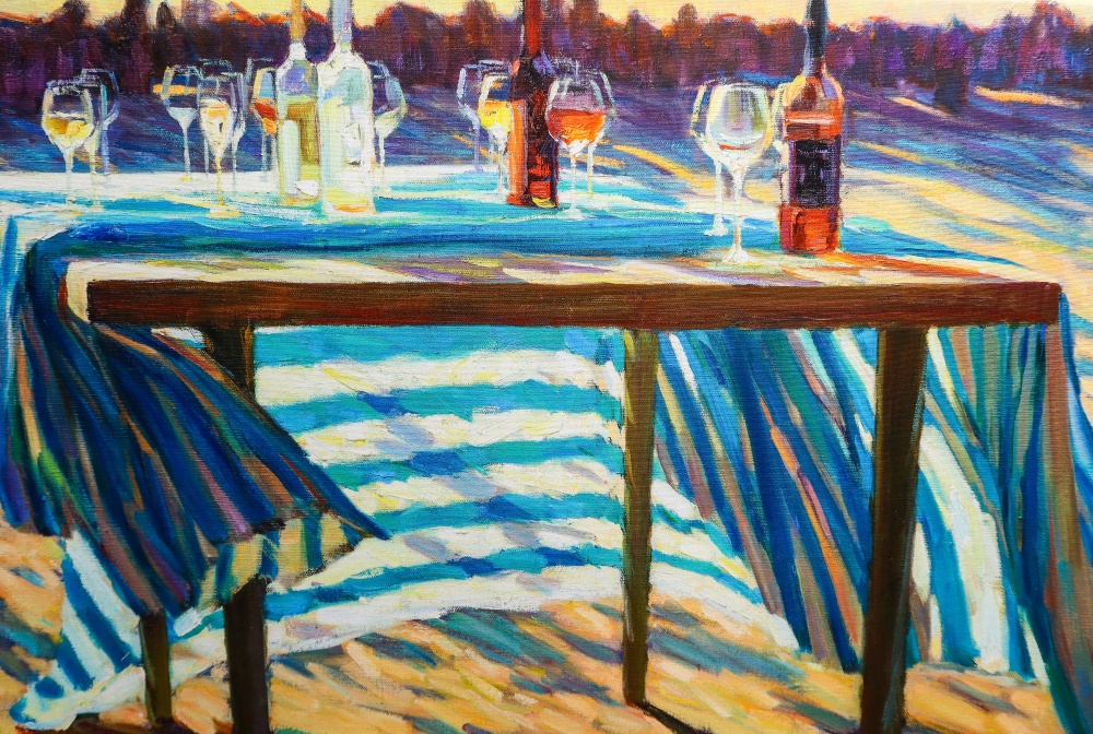 Het werk ‘Black label’ van Xue heeft een bijzondere positie ten opzichte van de rest van de collectie. Dit werk is namelijk een van de weinige ‘verlaten tafel’s’, waarvan er gebruik is gemaakt van blauwtinten. De combinatie tussen de blauwe tinten van de achtergrond en de speling van de wind in het kleed, geeft dit werk een dynamische uitstraling. Perfect om bij weg te dromen. Toch is een simpele beschrijving van het werk niks bij de beleving van het werk zelf. Het is daarom aan iedereen aan te raden om deze werken in het echt te komen bekijken, zeker omdat deze werken niet te verkrijgen zijn via de webshop.